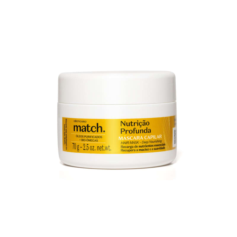 Match. o Boticário  estudou o DNA do seu tipo de cabelo¹ e traz soluções científicas em fórmulas projetadas que atendem a necessidade das cacheadas e crespas, entregando fios 100% nutridos da raiz às pontas².